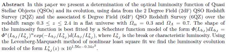 [31] S. M. Croom et al., “The 2dF-SDSS LRG and QSO survey: the QSO luminosity function at 0.4 < z < 2.6,” Monthly Notices of the Royal Astronomical Society, vol. 399, pp. 1755-1772, 2009.